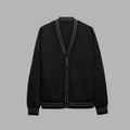 Featuring a classic V-neckline with contrast ribbed trims, the cardigan is finished with a button-front closure and a tonal BLVCK monogram embroidered at the chest. Ribbed cuffs and hem provide structure, while the clean lines keep the look polished and versatile.