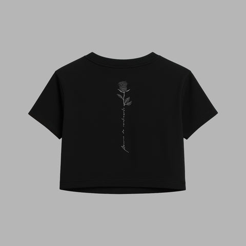 T-shirt noir à coupe courte avec illustration de rose