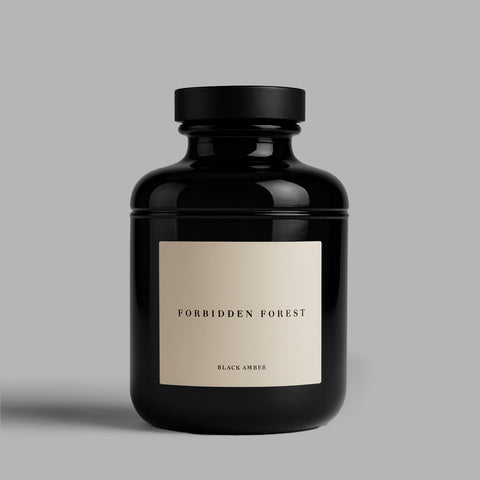 Step into the mystery of the night with the Forbidden Forest Black Amber Candle. Encased in a sleek jet-black glass vessel, this candle radiates elegance and sophistication, making it as much a statement piece as it is a source of fragrance.